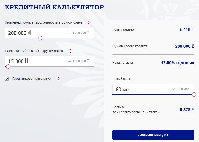 Рефинансировать можно кредиты других банков, которые подходят по следующим условиям: