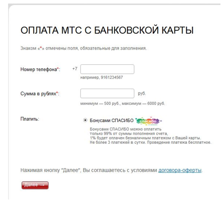 Оплата МТС бонусами Спасибо от Сбербанка Онлайн