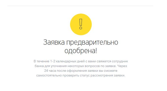 Шаг 9. Через 2 минуты клиент, как правило, видит сообщение «Заявка предварительно одобрена!».