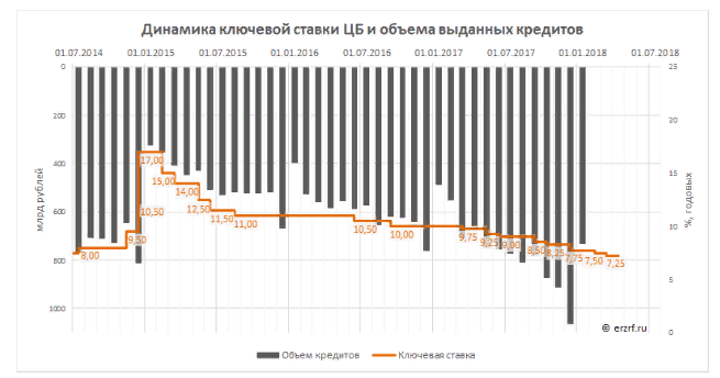 Новое заседание ЦБ пройдет в конце апреля. Эксперты выразили уверенность, что снижение не остановится. Так, по мнению «Открытие Брокер», ключевая ставка к концу 2018 года может достичь 6,25-6,5%. А Анатолий Аксаков, глава комитета ГД по финрынку, считает, что мы будем наблюдать ставку на уровне 6%.