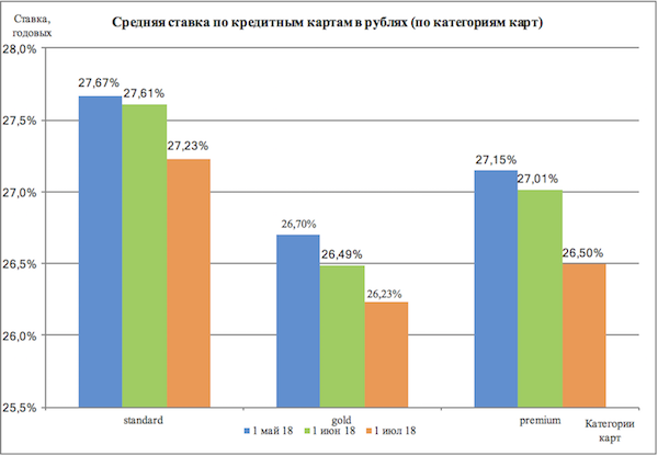 Об улучшении условий на рынке, а именно о снижении ставок по кредиткам, рассказали и аналитики «Банки.ру». Согласно исследованию портала, средние ставки, если смотреть по категориям карт, в июне падали в пределах 0,51 п.п. Кредитки категории Standard стали дешевле на 0,38 п.п., ставки по Premium стали ниже на 0,51 п.п., а по Gold — на 0,26 п.п.