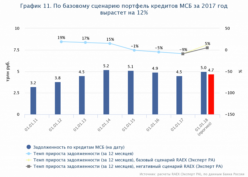 По прогнозам экспертов, рынок кредитования малого и среднего бизнеса в 2018 году будет расти. Так, по словам Алексея Изотова, члена Комитета ГД по финрынку, показатель вырастет на 10–15%. Такого же мнения придерживается и "Эксперт РА".