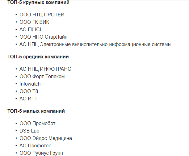 • общая выручка за предшествующий год: минимум - 100 млн, макс - 30 млрд руб.