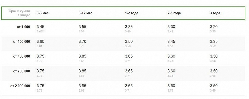 Оформить детский вклад в Сбербанке можно в рублях или долларах на период от трех месяцев до трех лет. В зависимости от длительности срока вложения и суммы вклада незначительно отличается процентная ставка от 3,2% до 3,85%.